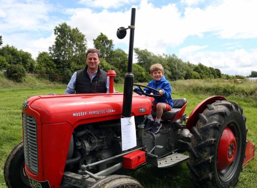 2 - Robbie Pollock and his dad, Adrain Pollock, Omagh, at a Massey Ferguson 35 at the vintage vehicle display.