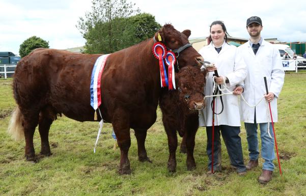 4 - Kirsten and Ryan Elliott, Newtownstewart, with their Salers cow, ‘Drumlegagh Monique’ and calf which was breed champion and Tyrone beef champion at Omagh Show.