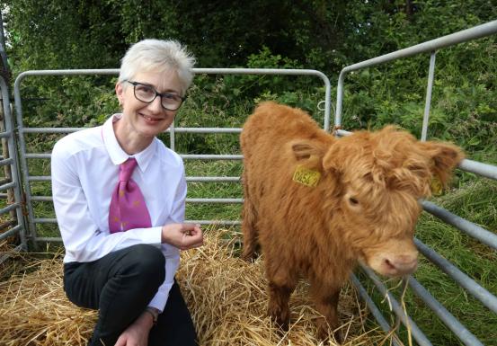 5 - Linda Moore, Mayne Curragh Highland Cattle, Omagh, with 'Kate', a two-month-old calf at Omagh Show.