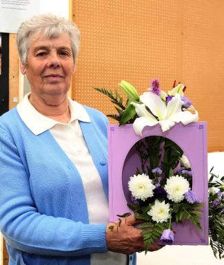 10 - Kathleen Martin, with her prizewinning flower arrangement in Home industries.