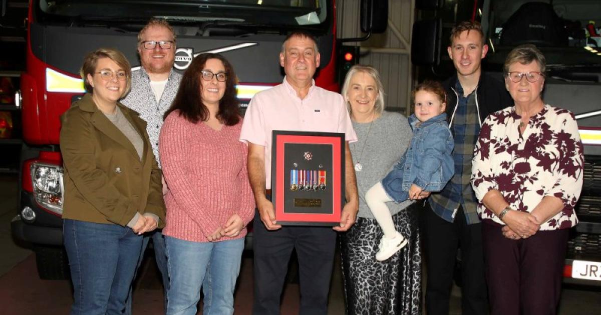 To mark his retirement, colleagues past and present gathered for a small presentation night at Omagh Fire Station, where Willie received service medals and heartfelt tributes.