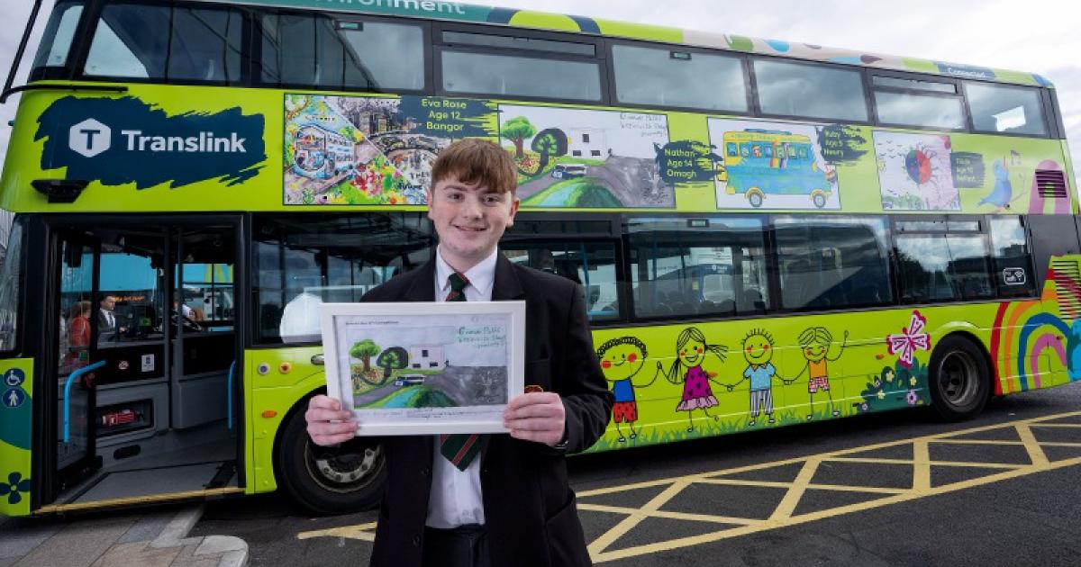 Nathan was one of just eight young winners selected from over 1,000 entries in Translink’s first-ever ‘Brand A Bus’ competition, which challenged children and teenagers to imagine a cleaner, greener future for Northern Ireland. His colourful, creative design - themed around climate action and sustainability – will now travel the country as part of Translink’s fleet, inspiring passengers and passers-by alike.
