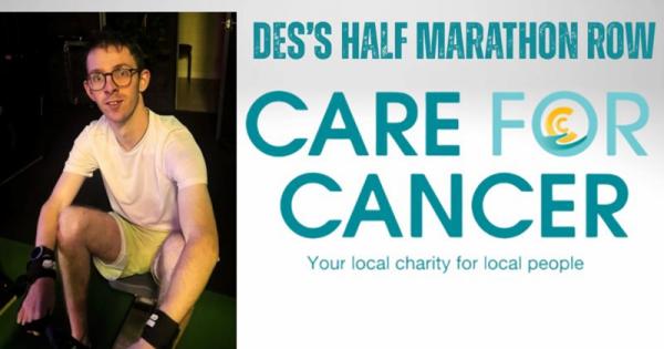 Aiming to row an impressive 21,980 meters - the equivalent of a half marathon, Des is also raising much needed funds for Care for Cancer in his aunt Roisin's memory.